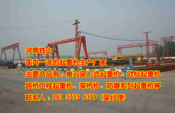 山西大同门式起重机|山西大同门式起重机厂家|山西大同门式起重机销售厂家【河南铁山】梁经理182 3733 6379山西大同门式起重机厂家产品销往全国各地,倍受广大用户及经销单位的赞誉和好评。主营产品:电动葫芦、单双梁桥式、门式起重机、架桥机、提梁机、移动模架(造桥机)、造船龙门、钢梁天桥、钢架桥等。产品广泛应用于高层建筑,水利、水电、高速公路、桥梁架设工程,是大中型建筑工程之优质理想产品。