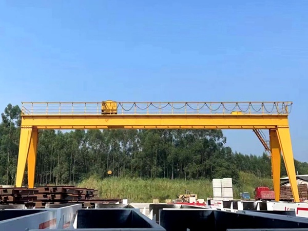 风力影响:户外使用的龙门吊,若未安装防风装置(如夹轨器、防风拉索),遇 5 级以上风力时,气流会对大梁产生侧向推力,引发晃动(尤其主梁跨度大、高度高时更明显)。需加装防风装置,大风天气(≥6 级)禁作业并锁死夹轨器。